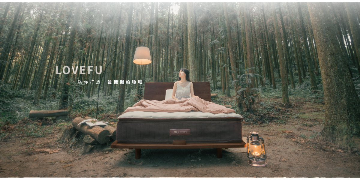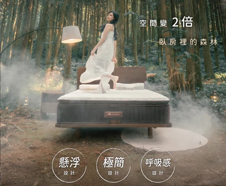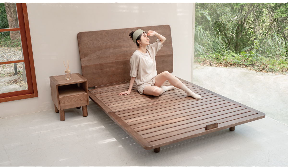 LOVEFU原木懸浮床架,可以與各種台灣床墊尺寸完美契合,透過內縮的床腳設計,巧妙創造出懸浮的視覺效果,讓房間看起來更寬敞。