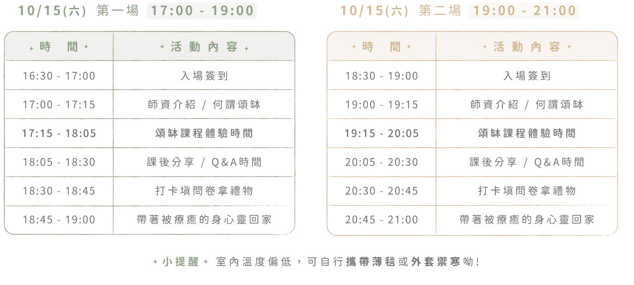 歡迎你來體驗這堂課,行程如下: