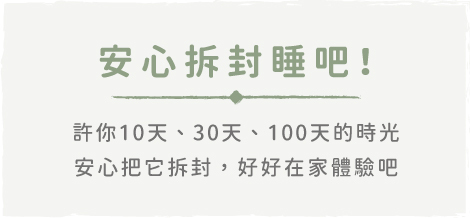 安心睡計畫從收到商品的當天開始計算,可以完整拆開進行體驗!