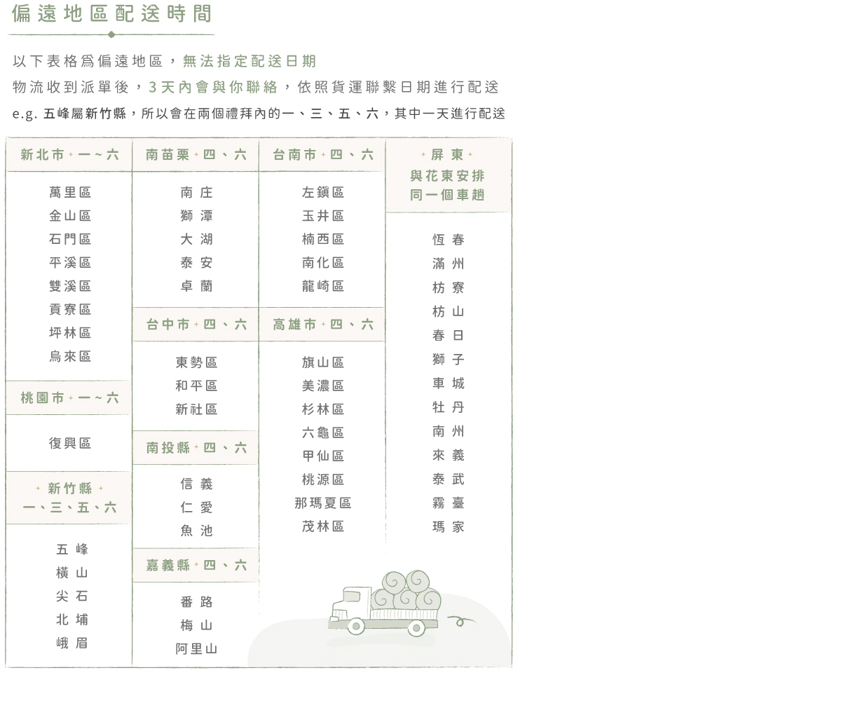南苗栗 - 週四、週六配送