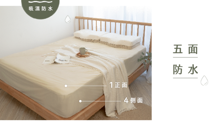 ˙ 防水範圍:床墊正面、側邊皆包覆防水。