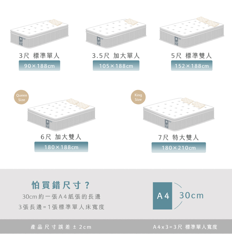 從單人到特大一目了然