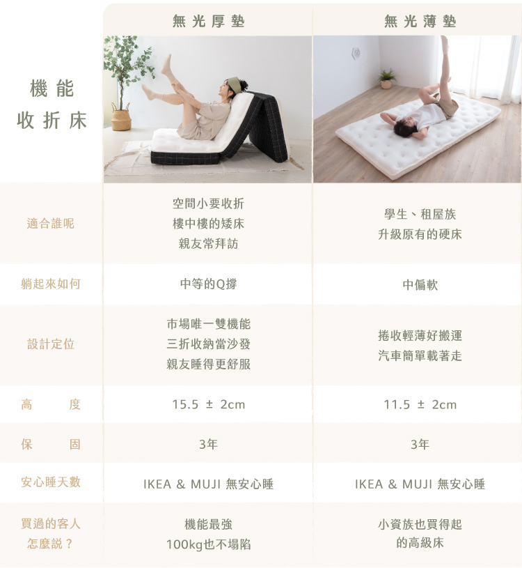 ˙ 唯有無光厚墊,超越獨立筒舒適的厚薄墊