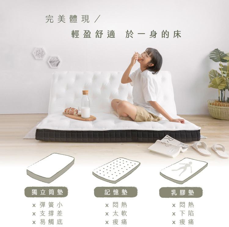 為了輕便、媲美獨立筒床墊的舒適層躺感