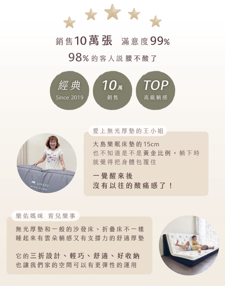 ˙ 唯有無光厚墊,超越獨立筒舒適的厚薄墊