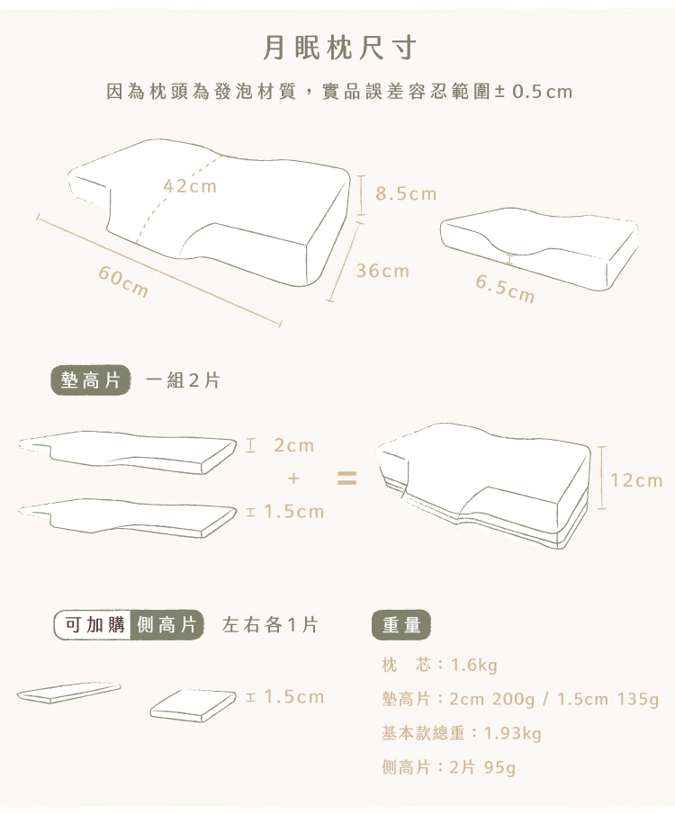 月眠枕專屬配件,打造專屬於你的枕頭高度
